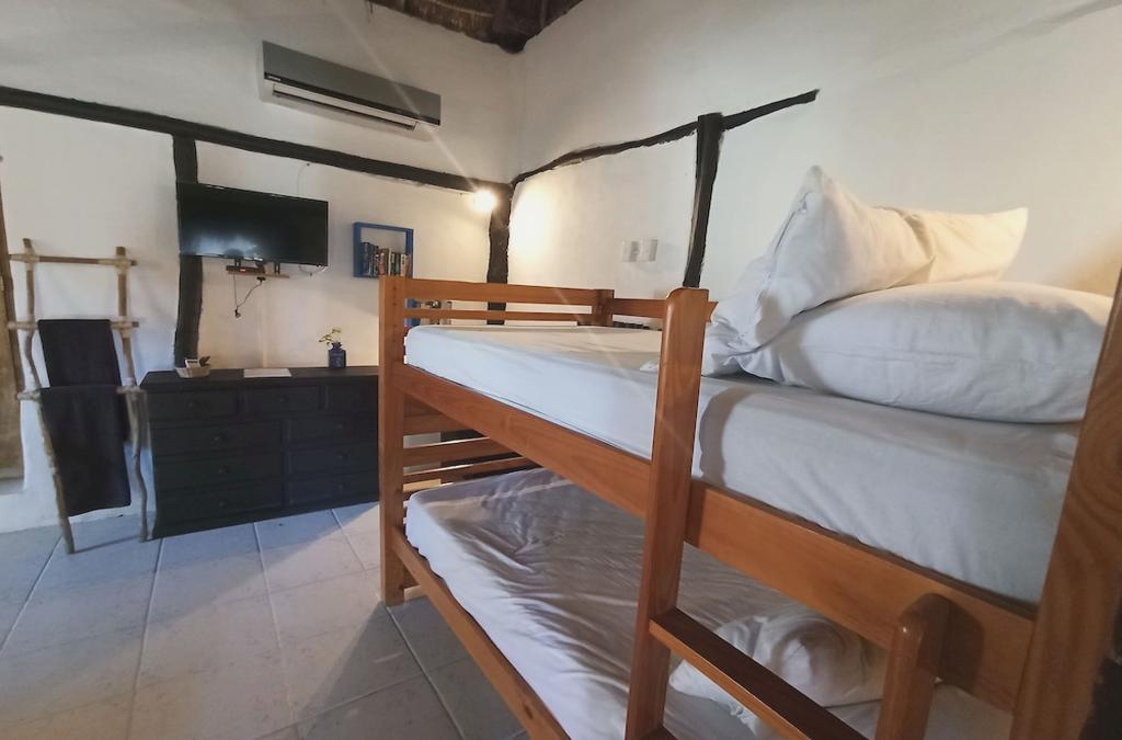 Et sentiràs com a casa teva a qualsevol de les 2 habitacions amb decoracions diferents, equipades amb microones i televisió LED. Aprofita la cuina compartida per preparar els teus àpats. La connexió a internet wifi gratuït et mantindrà en contacte amb els teus; també podràs veure el teu programa preferit a la televisió amb canals per cable. La cambra de bany està proveïda de dutxa, capçal de dutxa tipus pluja i assecadors de cabells. Aprofita el servei d'habitacions amb horari limitat d'aquest hostal, o compra alguna cosa per menjar al seu supermercat. Vols aclarir-te? Relaxa't i gaudeix amb la beguda que vulguis en un dels 1 bars a la platja. S'ofereix un esmorzar continental gratuït cada dia de 8: a 1:. Tindràs un servei de recepció les 24 hores, consigna d'equipatge i una bugaderia a la teva disposició. Pagant un petit suplement podràs aprofitar prestacions com a servei de transport a l'aeroport (anada i tornada) (disponible les 24 hores) i aparcament sense assistència gratuït. Si decideixes allotjar-te a Nativ Tulum Hotel Boutique, et trobaràs en una fantàstica zona de Tulum (Centre de la ciutat de Tulum) i estaràs a menys de 15 minuts amb cotxe de Platja de Tulum i Parc Nacional Tulum. A més, aquest hostal es troba a 4,3 km de Ruïnes maies de Tulum ia 1,8 km de Reserva de la biosfera Sian Ka'an. Les distàncies s'expressen en números rodons. Dos Aigües Park: ,4 km Parc Nacional Tulum: 1,9 km Ruïnes maies de Tulum: 3,9 km Platja Ruïnes: 4,3 km Cenote Crystal: 4,5 km Museu SFER IK: 4,6 km Gran Cenote: 4,7 km Platja pública Las Palmas: 5,1 km Platja Paradís: 5,6 km Platja de Tulum: 5,9 km Santuari del Mono de Tulum: 7,8 km Reserva de la biosfera Sian Ka'an: 1,8 km Cenote Manatí: 11,2 km LabnaHa Ecopark Adventures: 13,1 km Badia de Soliman: 13,2 km L'aeroport més pràctic per arribar a Nativ Tulum Hotel Boutique es troba a Cancún, Quintana Roo (CUN-Aeroport Internacional de Cancún) : 118,4 km