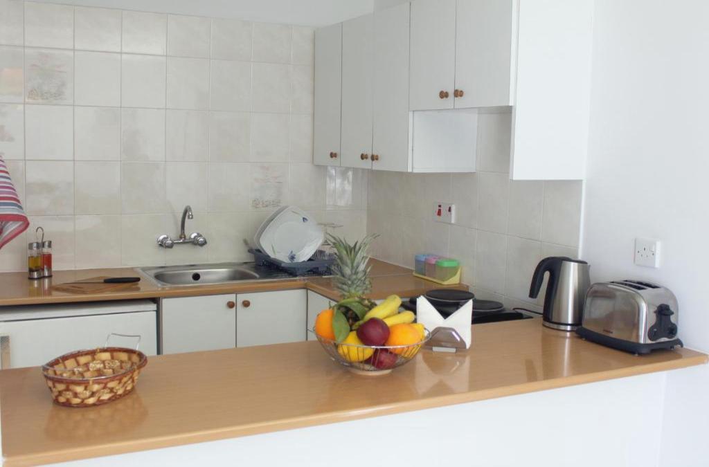 Els apartaments estan situats al peu d´una terrassa amb vista panoràmica ininterrompuda del camp que s´estén cap al mar. Queden a pocs minuts de la platja més propera, els restaurants, el transport públic i els bars de Chlorakas. A més, hi ha servei de trasllat amb autobús entre Paphos i la Badia del Coral. Els jaciments arqueològics de Pafos són a 6 km, la badia del Coral és a 9 km i la península 'Akamas, a 1 km. L´aeroport de Paphos és a 3 km. Els 3 apartaments, renovats el 27, són adequats per a famílies i estan construïts en un acollidor estil formant un petit poble on se sentirà com a casa. Els interiors han estat dissenyats pensant en el confort i la funcionalitat. 'establiment té aire condicionat i disposa de vestíbul amb servei de sortida i recepció 24 hores, caixa forta, servei de canvi de divises, sala de TV i sala 'esmorzars. També podeu fer ús del servei de bugaderia per un càrrec addicional i hi ha aparcament disponible (de pagament) per als que arribin amb cotxe. Els apartaments vénen amb el seu propi balcó i ofereixen als seus hostes privadesa i independència gràcies a les instal·lacions amb bany i cuina. Tenen cambres de bany amb dutxa/banyera i assecador, així com telèfon de línia directa i ràdio. La petita cuina ve amb nevera i cafetera/tetera. A més, hi ha aire condicionat regulable, caixa forta i balcó o terrassa. El complex disposa de piscina exterior i també podeu relaxar-vos a la sauna. Seguiu la carretera de la Badia del Coral amb cotxe o autobús. El complex és a uns 6 km de Pafos. Gireu a la dreta cap al poble de Chlorakas.