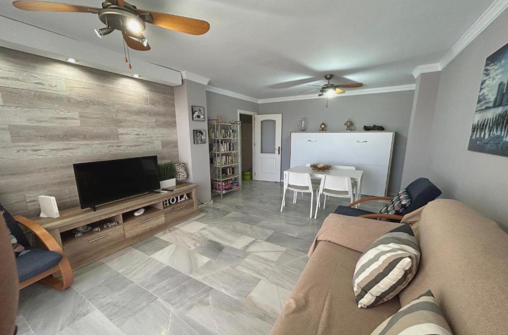 Boasting a patio with lake views, a private beach area and an outdoor swimming pool, JARDINES DEL MAR - Benalmadena Costa can be found in Benalmádena, close to Bil Bil Beach and less than 1 km from Santa Ana Beach. This beachfront property offers access to a balcony, mini-golf, free private parking and free WiFi. The apartment has facilities for disabled guests. The spacious apartment features 2 bedrooms, 2 bathrooms, bed linen, towels, a flat-screen TV with streaming services, a dining area, a fully equipped kitchen, and a terrace with sea views. The accommodation is non-smoking. For guests with children, the apartment features a baby safety gate. A water park and kids pool are available at JARDINES DEL MAR - Benalmadena Costa, while guests can also relax in the garden. Malapesquera Beach is 1.7 km from the accommodation, while Playa La Cala (Benalmádena) is 1.8 km from the property. Malaga Airport is 17 km away.