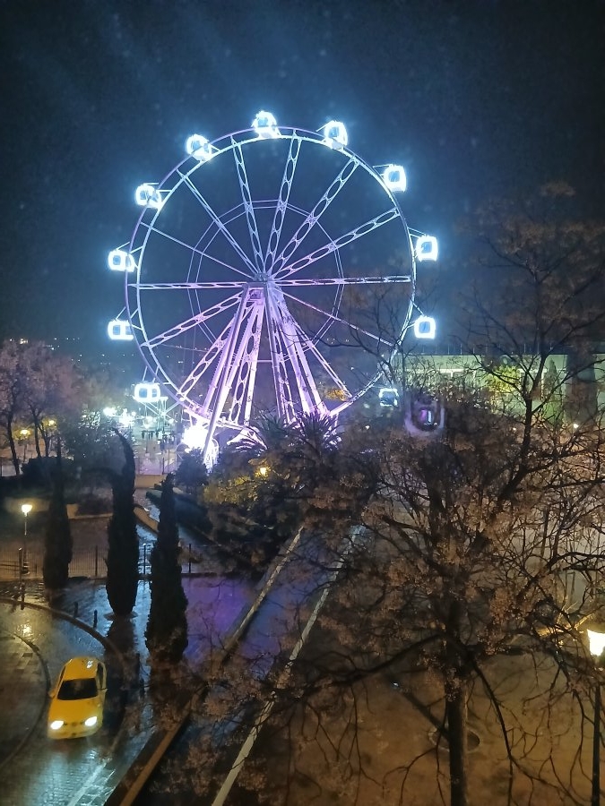La habitación tenía vistas al parque, donde había instalada una noria gigante que, lejos de ser un obstáculo, le daba un aire romántico a la estancia.