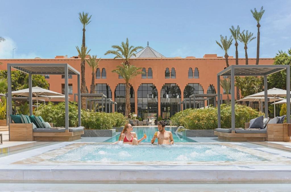 Das Hotel befindet sich im Herzen des Palmenhains von Marrakesch, 3 km vom Stadtzentrum entfernt. Die spanisch-maurische Architektur des Hotels ist auf herzliche Weise in das Herz eines 7 Hektar großen Parks integriert und der perfekte Ort für Seminare, Tagungen und Konferenzen. Es ist ein charmantes Konferenz- und Wellnesshotel, ideal für Familien und besteht aus insgesamt 255 eleganten Zimmern, darunter 12 Suiten. Es verfügt auch über eine Klimaanlage, eine Lobby mit 24-Stunden-Rezeption und Check-out-Service, einen Hotelsafe, Geldwechseleinrichtungen, eine Bar, ein Restaurant, Konferenzeinrichtungen, einen Fahrradverleih und Parkplätze für diejenigen, die mit dem Auto anreisen. Die Kleinen können sich im Kinderclub und auf dem Spielplatz vergnügen. Alle Zimmer verfügen über ein eigenes Bad mit Badewanne und Haartrockner, Direktwahltelefon, Kabel- / Sat-TV, einen kleinen Kühlschrank, ein Doppel- oder Kingsize-Bett, Klimaanlage, Heizung, Safe, separates WC sowie einen Balkon oder eine private Terrasse mit Blick auf die Gärten oder der Pool. Sie können die Sportausrüstung und das Gesundheits- / Wellnesscenter des Hotels nutzen, in dem Sauna-, Spa- und Massageanwendungen angeboten werden. Es gibt auch Innen- und Außenpools mit Kinderschwimmbereich, Strandbar und Sonnenschirmen. Das Hotel ist ideal für Golf- und Tennisfans. Es bietet Einrichtungen zum Spielen von Tennis und Tischtennis sowie Fitnessstudio, Bogenschießen, Fahrrad / Mountainbike, Volleyball und Badminton. Jeden Morgen genießen Sie ein kontinentales Frühstück und das Mittagessen ist ein Buffet. Die Einrichtung bietet ein All-Inclusive-Programm.