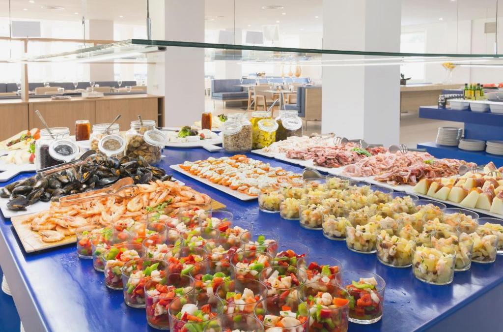 The buffet restaurant and pool bar serve a selection of culinary options, including international cuisine and tapas.