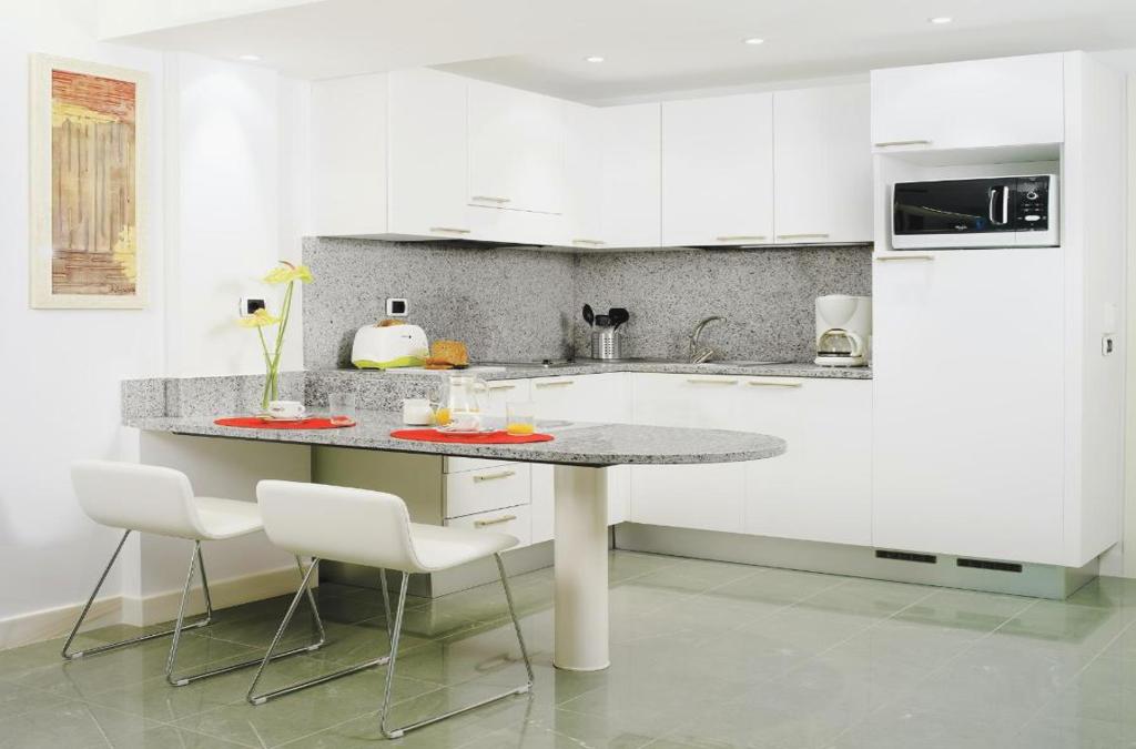 The apartment is located in the cosmopolitan area of ​​Puerto Rico and is just 20 meters from the beach and close to the shopping center with bars, restaurants, shops and places to go out at night. The bus resort is about 500 m. The complex was renovated in 2010 with materials and quality furnishings imported from Italy. It has a 24-hour reception with safe and currency exchange. The air-conditioned establishment comprises a total of 86 accommodation units as well as a restaurant, bar and parking. The rooms are equipped with a double bed, direct dial telephone, satellite / cable TV, Internet access and safe. The en suite bathrooms are fitted with a shower and hairdryer. The kitchens come with a fridge, cooker and tea / coffee. Guests also have a washing machine, ironing equipment, air conditioning, central heating and a balcony or terrace in the rooms. The beach hotel includes 2 swimming pools and a terrace. On the sandy beach you can rent chairs and umbrellas. The golf course is approximately 1.5 km from the apartment. A breakfast buffet is served each morning.