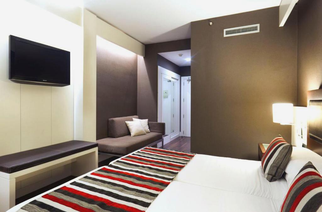 This hotel is located at the end of the famous Ramblas, not far from Plaça Catalunya. It is the cultural and historical heart of the city, ideal point from which to explore Barcelona. The most interesting places such as the Paseo de Gracia, the Picasso Museum, the MACBA, the Liceu, the Boqueria market, the Olympic Port, the Gothic Quarter, the Cathedral and the Sagrada Familia are easily accessible on foot. There are also plenty of shops nearby. Furthermore, the airport is 13 Km. Located in the heart of Barcelona, this hotel was partially renovated in 2008. The building has a total of 119 rooms spread over 7 floors. Some rooms have excellent views of the main street "Las Ramblas" with modern design, while others have a more classic design. Air conditioning throughout the building, with a spacious lobby with lifts and 24-hour reception. It also offers restaurant, room service, laundry service and wireless internet for a fee. The modern, comfortable rooms are well insulated, with double windows, for a peaceful stay. They are decorated in typical Spanish style with dark wood and marble bathroom. Feature hairdryer, satellite TV, Internet WLAN, minibar and digital safe and free. Many rooms overlook the Ramblas, with its beautiful views. There are also non-smoking rooms. Breakfast buffet is available. From Barcelona airport, by taxi, it takes 25 minutes to the hotel. Airbus runs every 12 minutes from the airport to Plaza Catalunya (50 hotel) and takes 30 minutes. By car should take the motorway south towards the city center and follow signs to Las Ramblas. The subway connects the hotel to the center in 15 minutes and the nearest resort is Plaza Catalunya, where there are also bus stops. If you wish, the hotel will ask for a taxi.