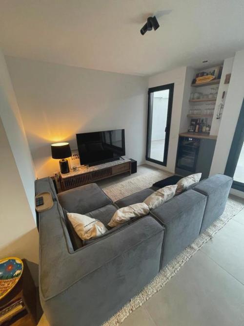 Apartamento de una habitación con terraza grande cerca de Barcelona se encuentra en Badalona, a 2 min a pie de Platja de la Barca Maria, a 11 km de Sagrada Familia y a 12 km de Port Olimpic, y ofrece patio. Este alojamiento frente a la playa ofrece parking privado gratis, wifi gratis y acceso a una terraza. Este apartamento tiene aire acondicionado y cuenta con 1 dormitorio, TV de pantalla plana y cocina con nevera y lavavajillas. Hay toallas y ropa de cama en el apartamento. Palacio de la Música Catalana está a 13 km del alojamiento, y Teatro Tívoli está a 13 km. El aeropuerto (Aeropuerto de Barcelona - El Prat) está a 25 km.