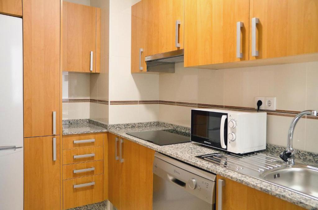 Apartamentos de 2 dormitorios con sofá cama en el salón comedor, 2 televisiones LCD, de 32” una en el salón comedor y otra en el dormitorio principal. Cuentan con baño completo con secador de pelo, cocina completamente amueblada, microondas, cafetera, batidora y menaje. Disponen además de lavadora, plancha, tabla de planchar, ropa de cama y baño.