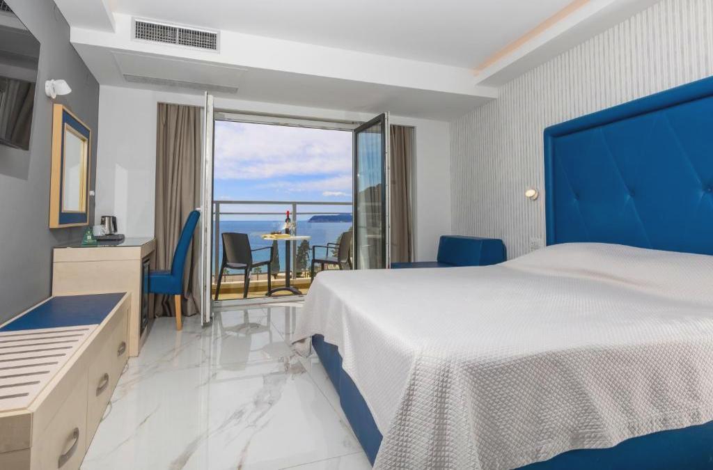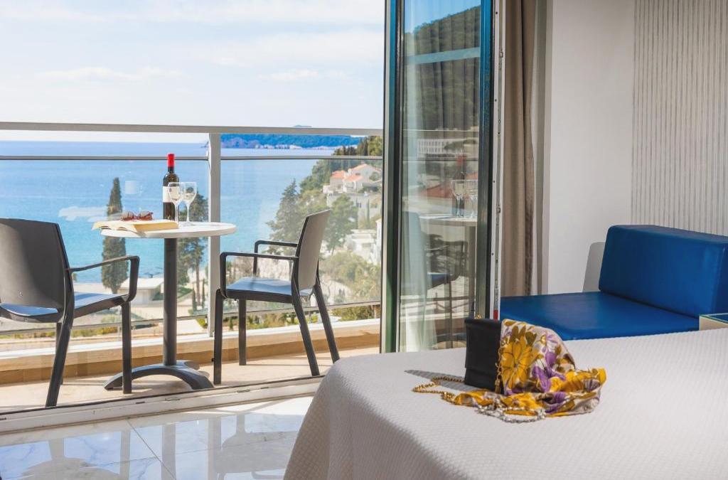 Este hotel se encuentra en el centro de la península de Lapad, a 100 metros de la playa principal. El centro histórico de Dubrovnik está a 3 km, y se llega hasta él en autobús. La propiedad cuenta con 244 habitaciones. Entre sus instalaciones hay un mostrador de recepción, caja fuerte, ascensor, rincón de internet, bar de aperitivos, restaurante y sala de TV. También dispone de varios salones de conferencias. Cuenta con equipos de proyección audiovisual, y puede proporcionar equipamientos técnicos según las necesidades de los huéspedes. Hay un aparcamiento frente al hotel. Las habitaciones disponen de un cuarto de baño privado, secador de pelo, teléfono, TV, minibar y caja fuerte. Además tienen un balcón con fabulosas vistas al mar. Las suites, además, cuentan con una zona de estar y un jacuzzi.