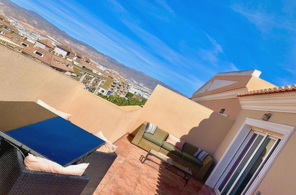 ÁTICO DELUXE entre CENTRO y PLAYA Salinas con TERRAZA, WIFI, PISCINA climatizada, GYM, SAUNA y GARAJE -Smart TV está en Roquetas de Mar y ofrece una terraza con vistas a la ciudad y a la montaña, además de piscina al aire libre abierta todo el año, piscina cubierta y centro de fitness. Este apartamento dispone de parking privado gratis, salón de uso común y wifi gratis. Este apartamento con aire acondicionado consta de 1 dormitorio, una sala de estar, una cocina totalmente equipada con nevera y cafetera, y 1 baño con ducha y artículos de aseo gratuitos. Hay toallas y ropa de cama en el apartamento. En la recepción 24 horas se habla inglés, español y italiano, y el personal siempre está dispuesto a echar una mano. También hay zona de juegos infantil en el apartamento. Playa de Las Salinas está a 12 min a pie del alojamiento, y Playa La Romanilla está a 1,2 km. El aeropuerto más cercano (Aeropuerto de Almería) está a 37 km.