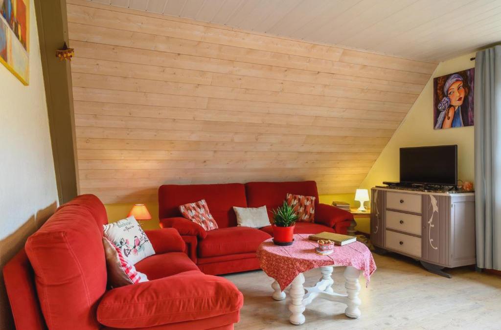 Gîte en montagne vosges alsaciennes, que cuenta con zona de barbacoa, dispone de alojamiento en Fréland con wifi gratis y vistas a la montaña. El apartamento, que tiene parking privado gratis, está en una zona en la que se pueden practicar actividades como senderismo, esquí y ciclismo. El apartamento dispone de 2 dormitorios, 1 baño, ropa de cama, toallas, TV con canales vía satélite, cocina totalmente equipada y terraza con vistas a la ciudad. Casa de las Cabezas está a 18 km del alojamiento, y Colegiata de San Martín está a 18 km. El aeropuerto (Aeropuerto internacional de Estrasburgo) está a 73 km.