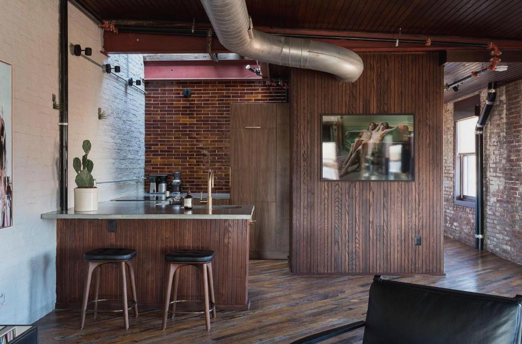 Il Wm si trova a Filadelfia, a 2,6 km dalla Temple University e a 3,6 km dal Museo Nazionale della Libertà. Il Mulherin Sons Hotel offre sistemazioni con connessione Wi-Fi gratuita, aria condizionata, un ristorante e un bar. Tutte le unità sono dotate di cucina completamente attrezzata con lavastoviglie, area salotto con divano, TV a schermo piatto, lavatrice e bagno privato con doccia e asciugacapelli. C'è un frigorifero, forno, piano cottura, bollitore e macchina per il caffè. L'aparthotel dista 4,1 km dal Pennsylvania Convention Center e 5 km dalla Barnes Foundation. 20 km dall'Aeroporto Internazionale di Filadelfia, lo scalo più vicino. Hotel dei figli di Mulherin.