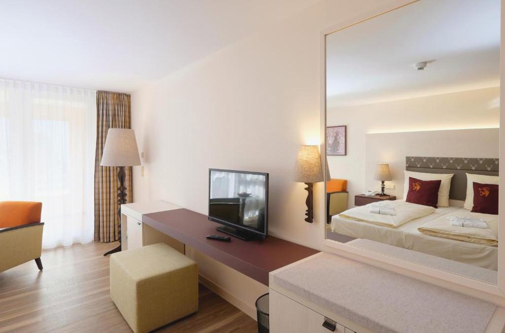 L'Hotel Bären Titisee offre camere ampie, una piscina interna e un ristorante tradizionale che serve specialità locali: il tutto a 860 metri sul livello del mare e a soli 400 metri dal lago Titisee. Ogni camera dell'Hotel Bären Titisee presenta un balcone privato, mobili moderni in legno e una zona soggiorno separata. Ogni mattina potrete gustare una ricca colazione a buffet nel moderno ristorante dell'Hotel Bären, che a cena propone piatti internazionali e specialità della regione del Baden. Il centro benessere a 2 piani del Bären è a vostra disposizione senza alcun costo aggiuntivo: qui troverete un'ampia zona relax e una sauna. Visitate anche la terrazza del Bären Titisee, che regala splendide vedute panoramiche sul lago Titisee. La stazione ferroviaria dista solo 150 metri.