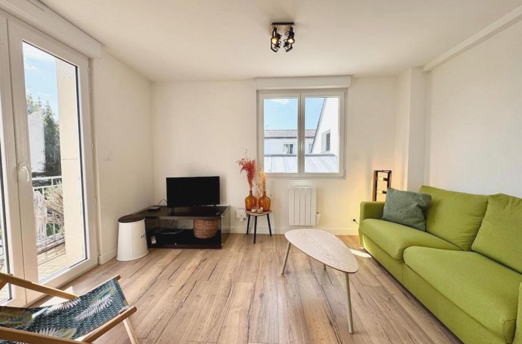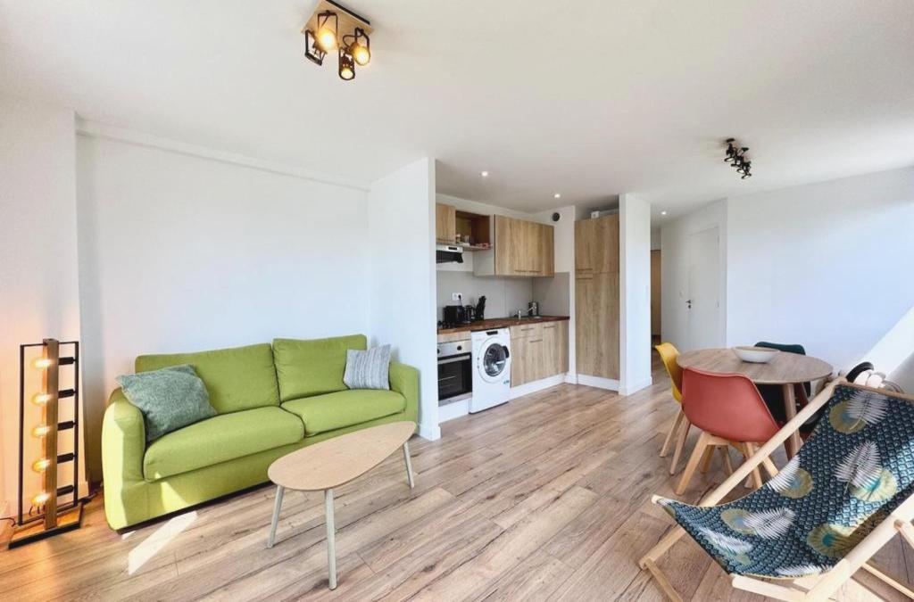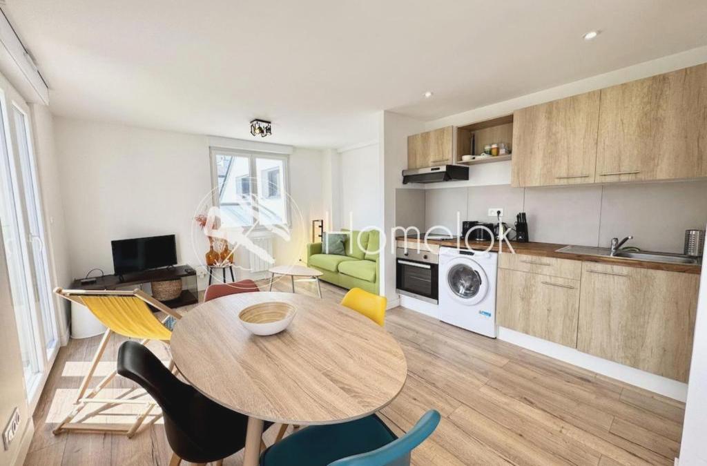Situated in Ploemeur in the Brittany region, Au coeur des Chênes, 2p has a balcony. The property is located 7.7 km from Lorient Train Station, 12 km from Parc des Expositions Lorient and 41 km from Plouharnel Train Station. The property is non-smoking and is set 6.2 km from Football Club Lorient. With free WiFi, this 1-bedroom apartment offers a flat-screen TV, a washing machine and a fully equipped kitchen with a dishwasher and microwave. This apartment also features a terrace that doubles up as an outdoor dining area. Eric Tabarly Sailing Museum is 7.3 km from the apartment, while Ploemeur Océan Golf Course is 7.4 km from the property. Lorient South Brittany Airport is 2 km away.