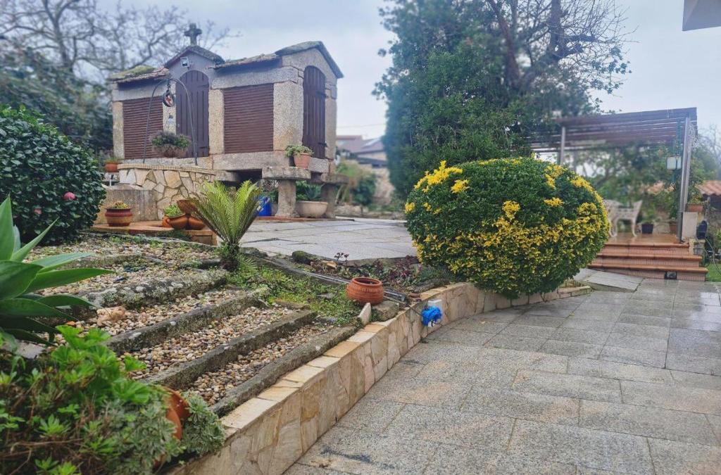 Apresentando vista da piscina, Lugar da Pereira apresenta acomodações com varanda e máquina de café, a cerca de 17 minutos a pé de Praia América. O alojamento apresenta uma piscina privada, jardim e estacionamento privado gratuito. Esta casa de férias com um terraço e vista da montanha tem 4 quartos, uma sala de estar, uma televisão de ecrã plano, uma cozinha equipada com frigorífico e máquina de lavar louça, e 2 casas de banho com bidé. Toalhas e roupa de cama são providenciadas nesta casa de férias. Os hóspedes de Lugar da Pereira podem praticar caminhadas nas proximidades, ou aproveitar ao máximo a piscina exterior sazonal. Estação Marítima fica a 17 km de Lugar da Pereira, enquanto Ria de Vigo Golf está a 39 km da propriedade. O Aeroporto de Vigo fica a 24 km de distância.