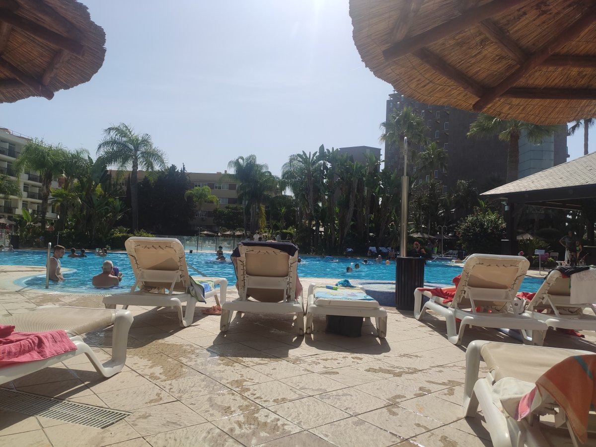 - Guerra por las tumbonas: A las 10:00h se da el pistoletazo de salida a las tumbonas, y en menos de 3 minutos ya están todas las tumbonas pilladas con toallas. Si bien el personal de la piscina deja una nota donde se dice que no se pueden reservar las tumbonas, solo es una advertencia, donde se dice que la toalla “puede” ser retirada (pero nunca se retira).