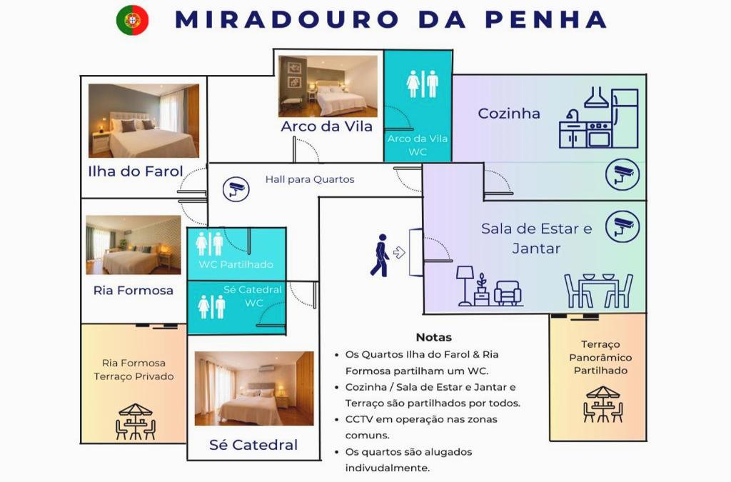 Em Faro, a cerca de 11 km de Igreja de São Lourenço, Miradouro da Penha fornece serviços de concierge, quartos não fumador, um salão partilhado, acesso Wi-Fi gratuito em toda a propriedade e um terraço. O alojamento está a cerca de 26 km de Marina de Vilamoura, a 27 km de Ilha de Tavira e a 42 km de Centro Comercial Algarve Shopping. Esta casa de hóspedes está a 48 km de Marina de Albufeira e a 19 minutos a pé de Igreja do Carmo e Capela dos Ossos. Os quartos dispõem de ar condicionado, um frigorífico, uma máquina de lavar louça, máquina de café, bidé, um secador de cabelo e roupeiro. Todos os quartos estão equipados com chaleira, enquanto quartos selecionados incluem varanda e outros também providenciam aos hóspedes vistas da cidade. As acomodações providenciam roupa de cama e toalhas. Estação Ferroviária de Tunes fica a 44 km de Miradouro da Penha, enquanto Praça da Cidade Velha de Albufeira está a 46 km de distância. O aeroporto mais próximo é o Aeroporto de Faro, que fica a 13 km de Miradouro da Penha.