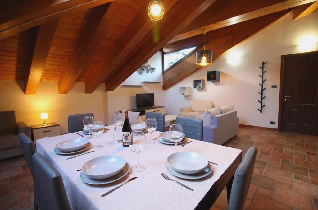 Attico dell'Aquila localiza-se em Brusson, apenas a 1,7 km de Museu Chamousira Brusson, e fornece acomodações com vista da montanha, acesso Wi-Fi gratuito e estacionamento privado gratuito. O alojamento está a 12 km de Maciço do Monte Rosa e 13 km de Antagnod. Este apartamento tem 2 quartos, uma sala de estar, uma cozinha totalmente equipada com frigorífico e máquina de café, e 2 casas de banho com bidé e chuveiro. Toalhas e roupa de cama são providenciadas neste apartamento. Castelo de Graines fica a 4,5 km de Attico dell'Aquila, enquanto Basílica de San Martino di Antagnod está a 11 km de distância. O Aeroporto de Turim fica a 90 km da propriedade.