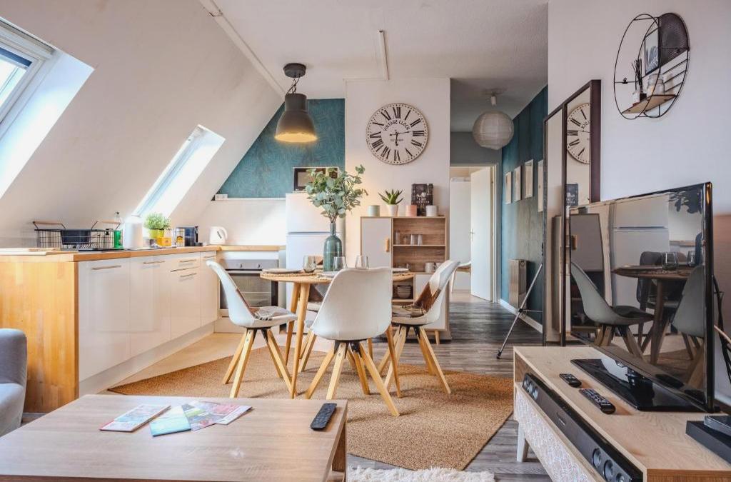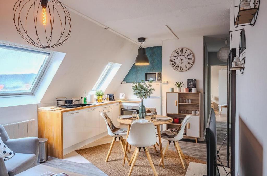 Cocon sous les toits - vue sur les châteaux et le vignoble - proche centre ville - parking gratuit localiza-se em Sélestat, a 13 km de Castelo de Haut-Koenigsbourg e 21 km de Colmar Expo, numa área onde pode desfrutar de caminhadas. O alojamento apresenta vistas da montanha e acesso Wi-Fi gratuito em toda a propriedade. Este apartamento tem 1 quarto, uma sala de estar, uma cozinha totalmente equipada com frigorífico e máquina de café, e 1 casa de banho com banheira e produtos de higiene pessoal gratuitos. Toalhas e roupa de cama são providenciadas neste apartamento. Casa das Cabeças fica a 24 km de Cocon sous les toits - vue sur les châteaux et le vignoble - proche centre ville - parking gratuit, enquanto Igreja de Saint-Martin Collegiate está a 25 km da propriedade. O aeroporto é o Aeroporto Internacional de Estrasburgo, que está a 38 km de distância, e o alojamento disponibiliza serviço de transfer do aeroporto por um custo adicional.